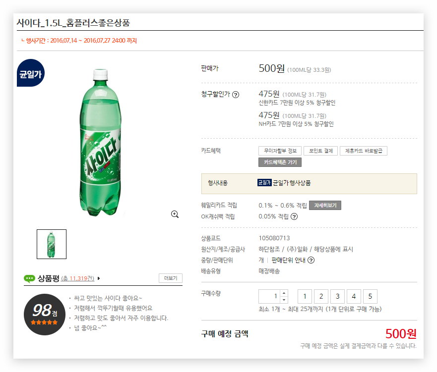 홈플 콜라 사이다는 구입 말려드리고 싶어요...