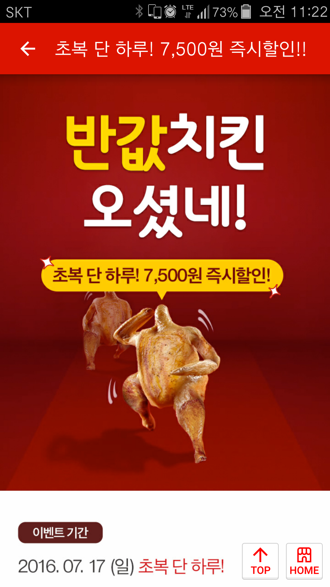 요기요 초복(17일) 7500원 할인 이벤트하네요.