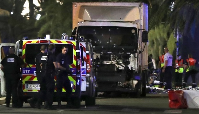 트럭이 인명살상을 의도한 듯 지그재그로 질주하면서 최소 84명이 숨졌고 수십명이 다쳤다. 부상자 중 18명은 중태다.