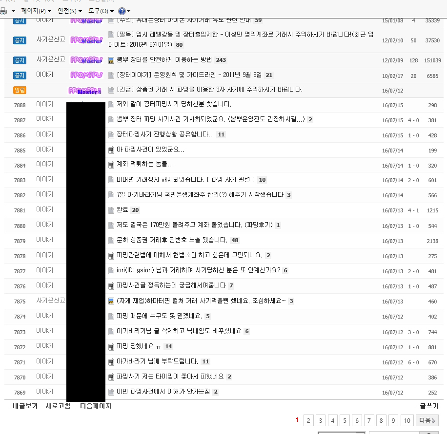 어떤 분이 댓글에 장터게시판 스샷을 요청하셨는데
