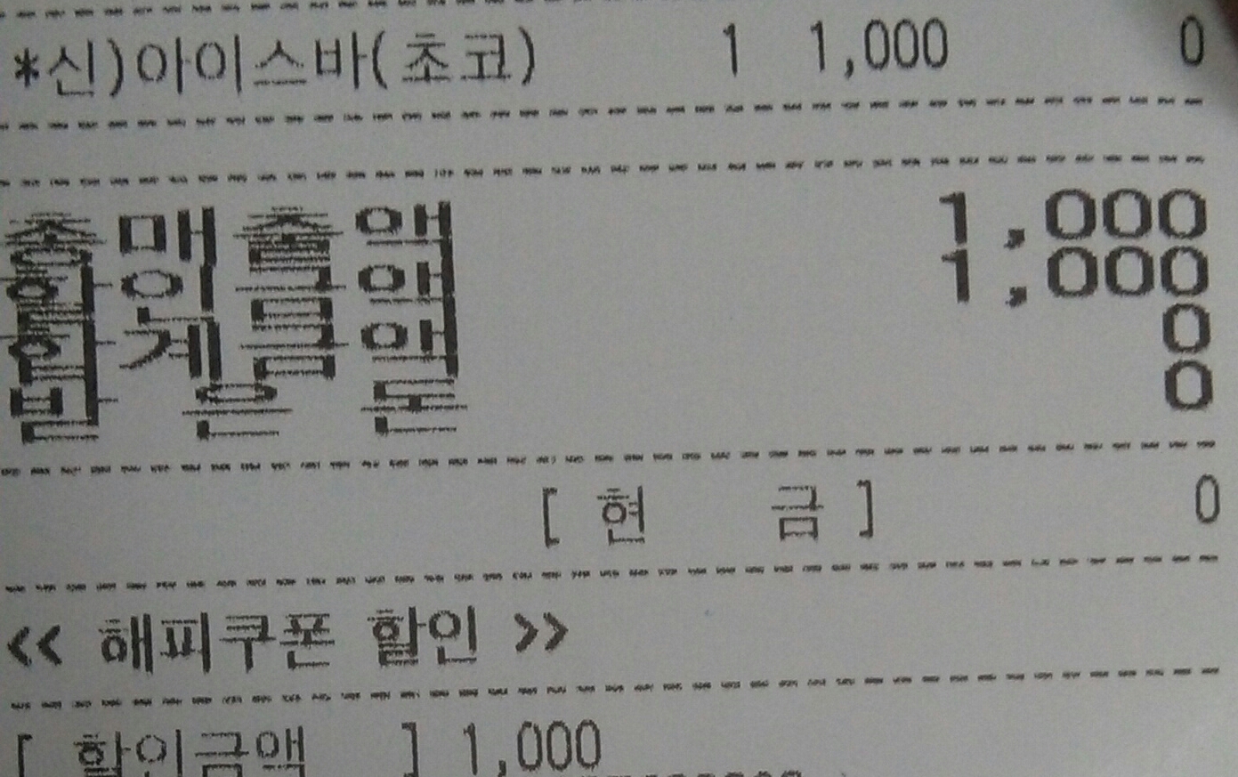 마지막은 오늘 뿌린 아이스 캔디! 할인 쿠폰이라 기계 누르는 게 다른 가 봐요.