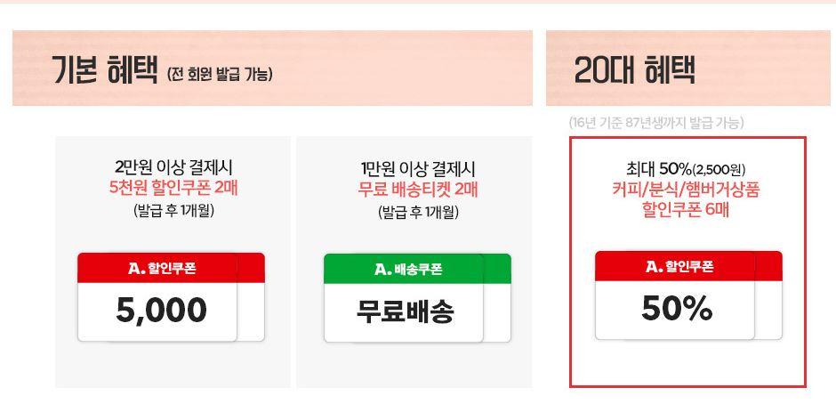 20대 쿠폰도 같이 발급되나보네요ㅎ