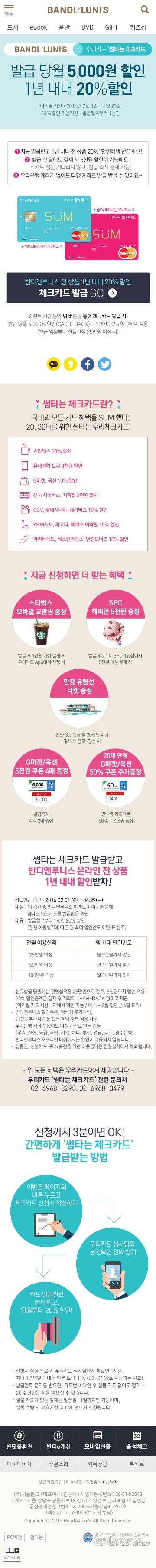 도서 5,000 쿠폰 & 20% 할인 - 반디앤루니스/우리체크카드