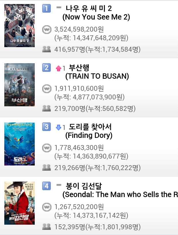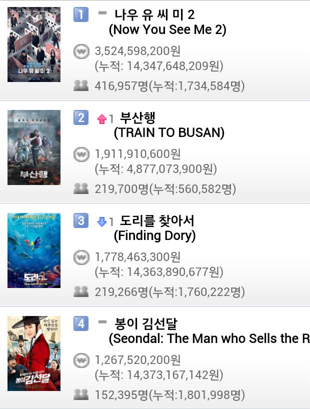 부산행은 이번주 개봉하는데 벌써 50만넘었구요
