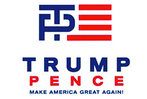​4. 조잡하고 성적 이미지... 하루만에 삭제된 트럼프 캠페인 로고(▼사진) → 트럼프의 T가 러닝메이트 ‘펜스’의 P를 관통하는 조합으로 성조기 모양에 배치.(국민)