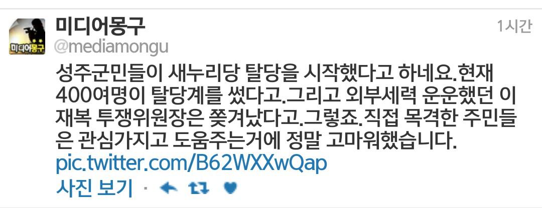 성주를 내주고 TK지지를 더 굳건히 할수 있으면 지들딴엔 개이득이라고 생각했겠죠. 그리고 다음에 또 새누리 찍을테고.. 밀양보니 뻔하네요 |