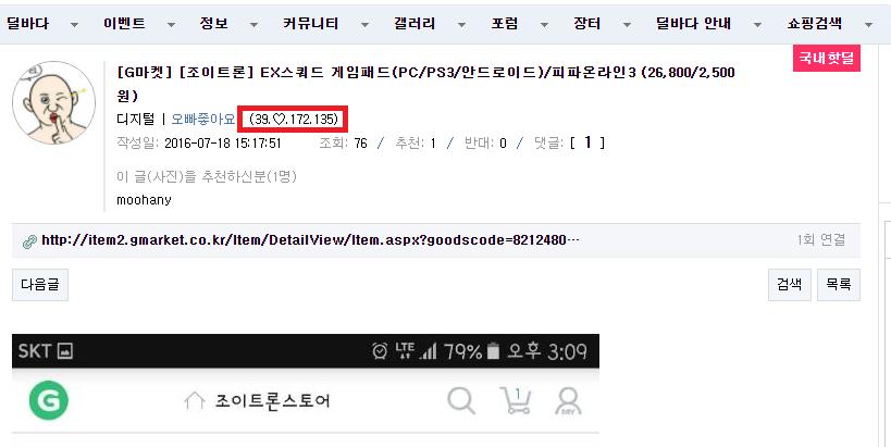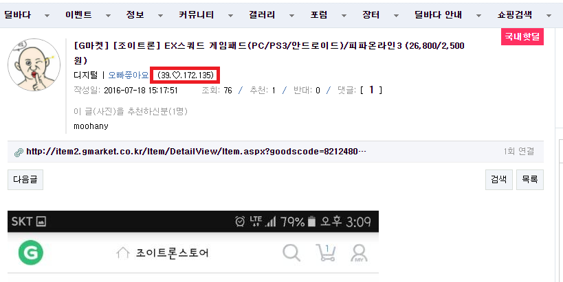첫글이 핫딜 게시글이며 바로 이어진 댓글..