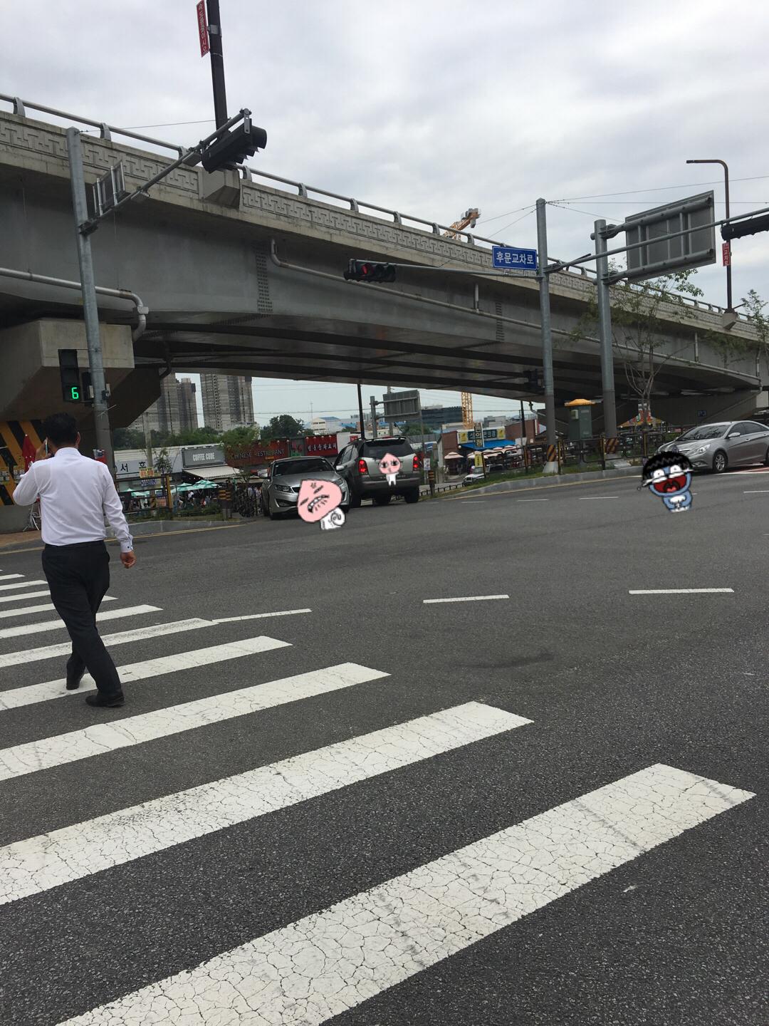 두번째 사진에서 택시보고 비켜가라고 손짓하시는 장면입니다. ㅎㅎ