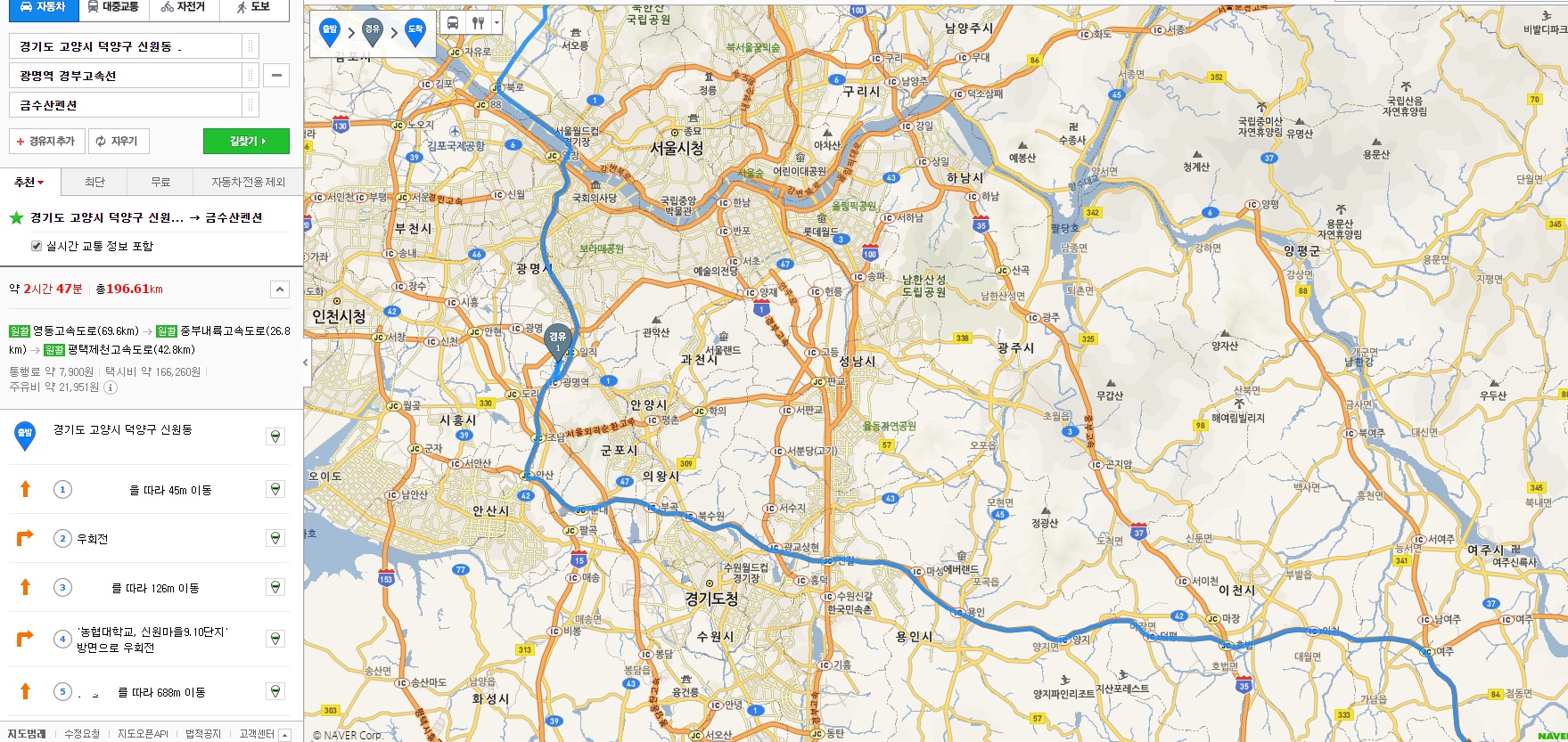 광명에서 서해안 타고 서서울톨게이트 지나서 영동 합류하시면