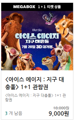 메가박스 아이스에이지1+1 3장남았어요!