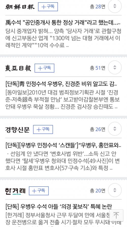 나머지는 전부 우수석 관련 의혹 1면 단독.