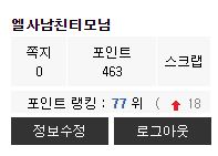 데헷 오후에 할게없어서 상주해있다보니 점수가 많이 올랐네요ㅎㅎ |