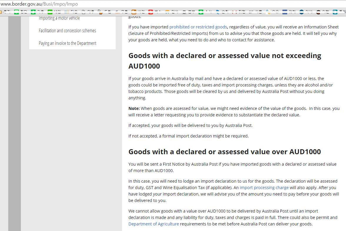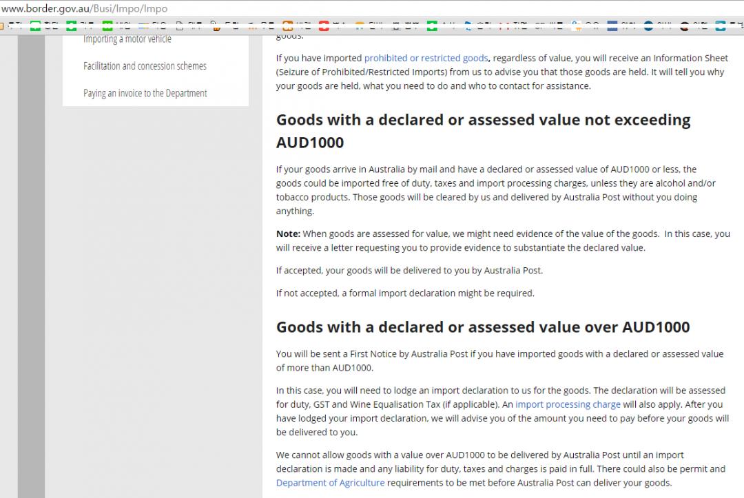 한국은 미화 200인데 여긴 호주달러 1000달러까지 면세네요 ㅋㅋㅋㅋ