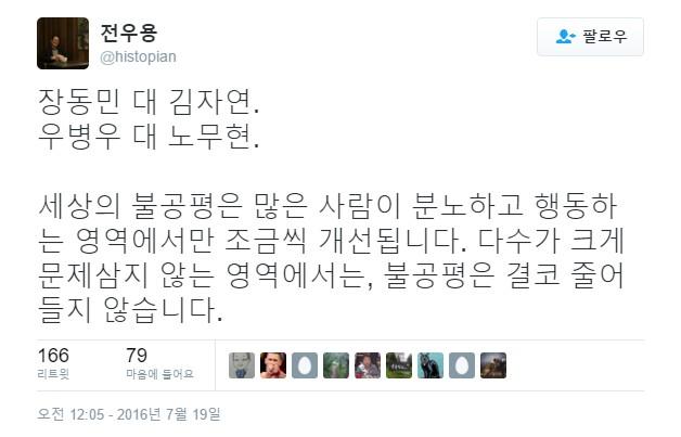 이부분은 어느정도 공감은 가는데 그 밑 멘션은 도저히 지금까지의 전우용씨라고는 생각하기힘든내용이네요.