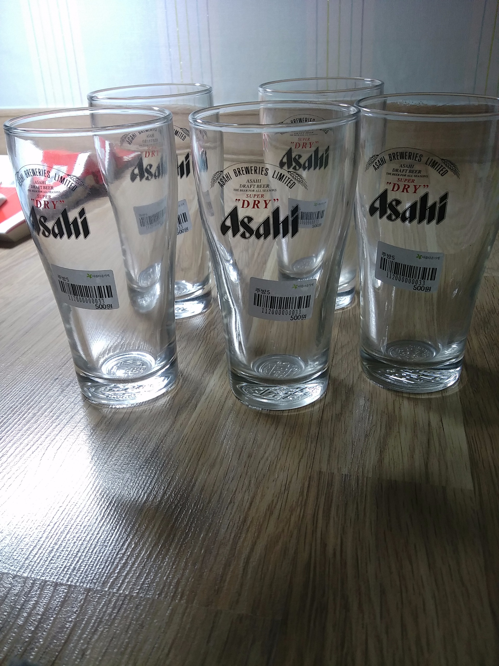 아사히 맥주잔 개당 500원에 5개 2500원 사왔네요^__^ (아사히는 제가 다쓸어옴 ㅎ)