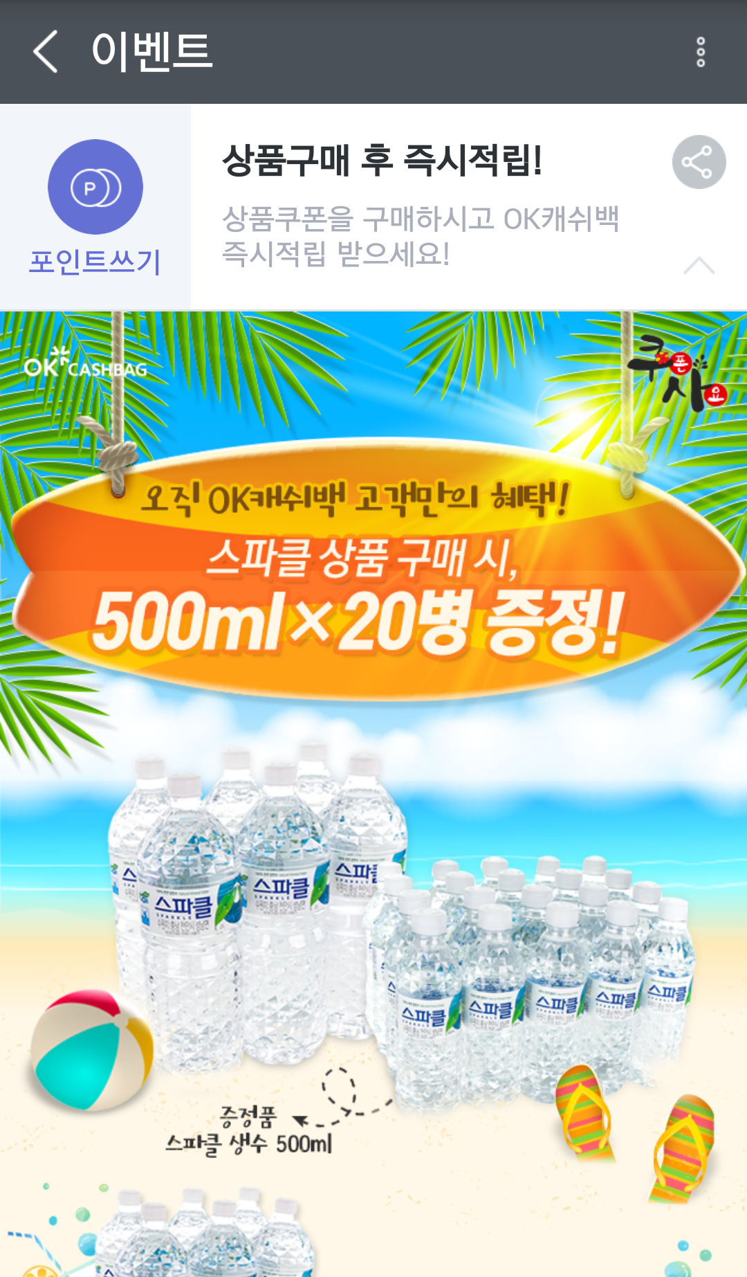 오케이 캐시백 쿠폰사요 미리줌 3,000 포인트 오늘까지 스파클몰에서 사용하면 추가 혜택이 있어요