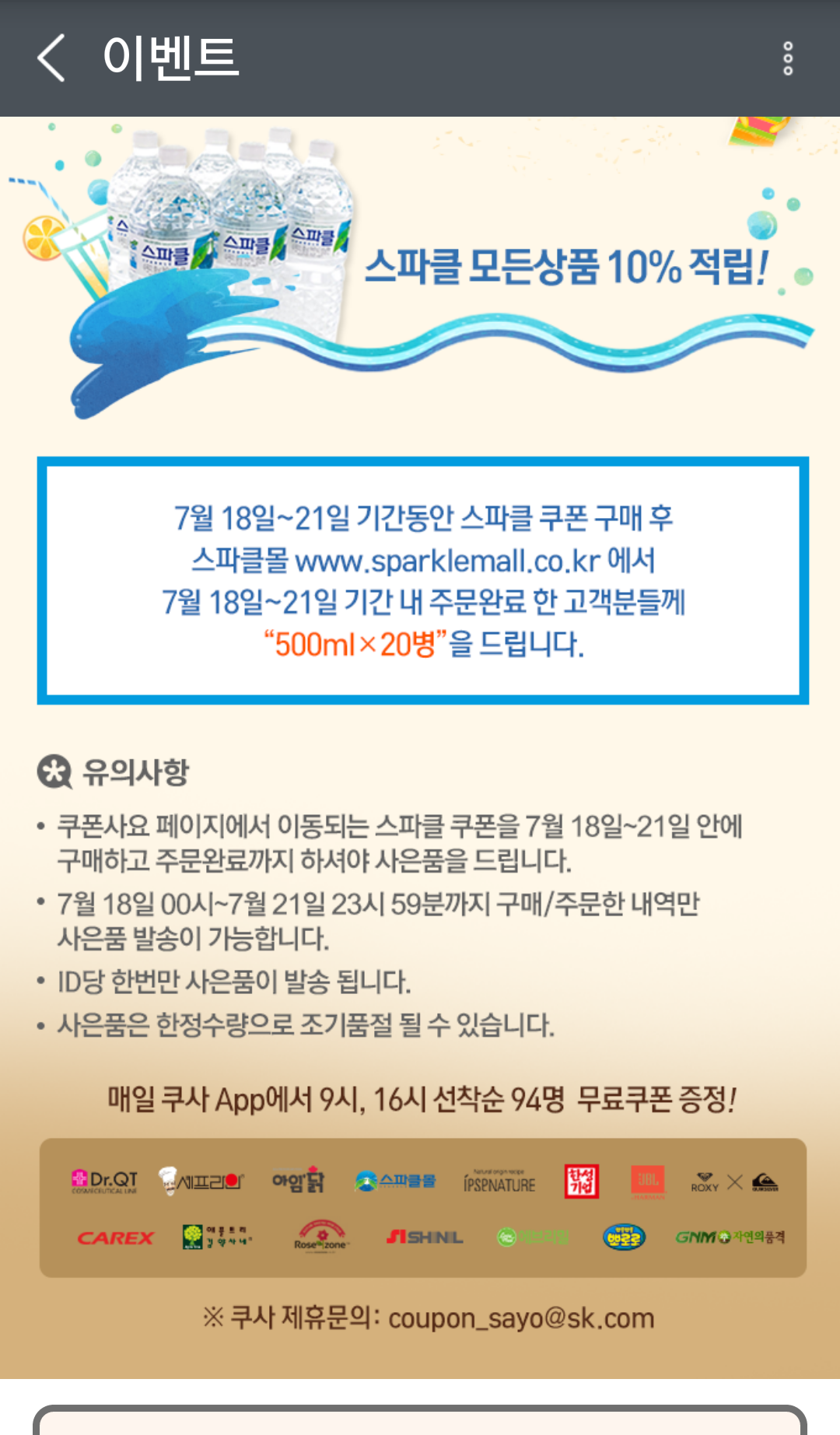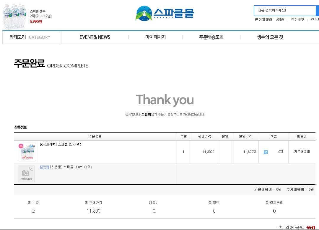 그러다가 복날 맞이 스파클링몰에서 물품 구매시 500ml 1팩(20병) 을 추가 증정한다는 소식을 보고서