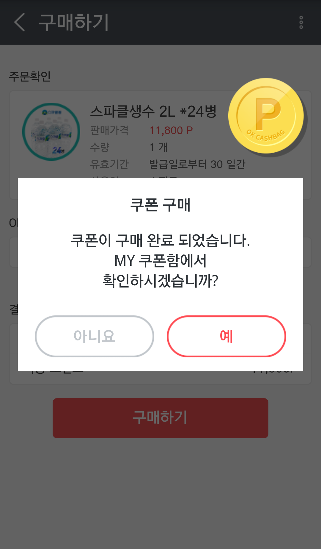 인증을 하면 아래처럼 쿠폰에서 제품 구매 페이지로 연결되는 버튼이 있어요