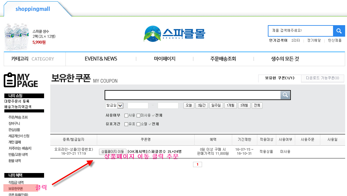 먼저 스파클몰에서 쿠폰 인증을 해야 하더라구요
