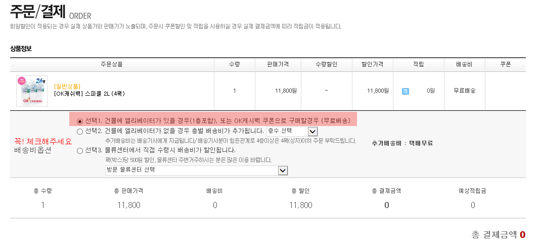 선택 1을 하더라도 화면 하단에 쿠폰을 선택하여 결제로 처리해야 결제할 금액 0원으로 나오더군요