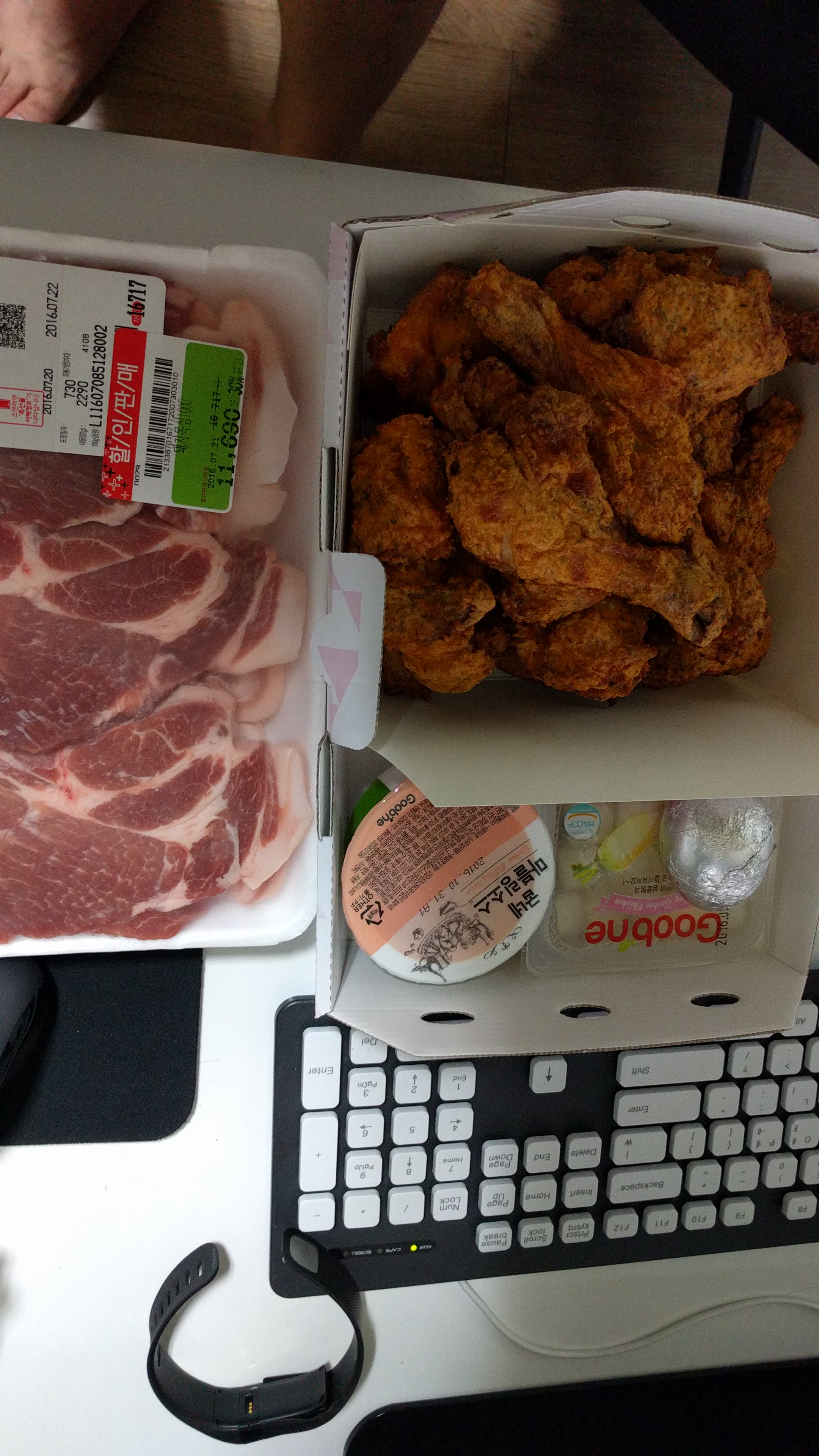 오오..돼지고기랑 치킨 오오..