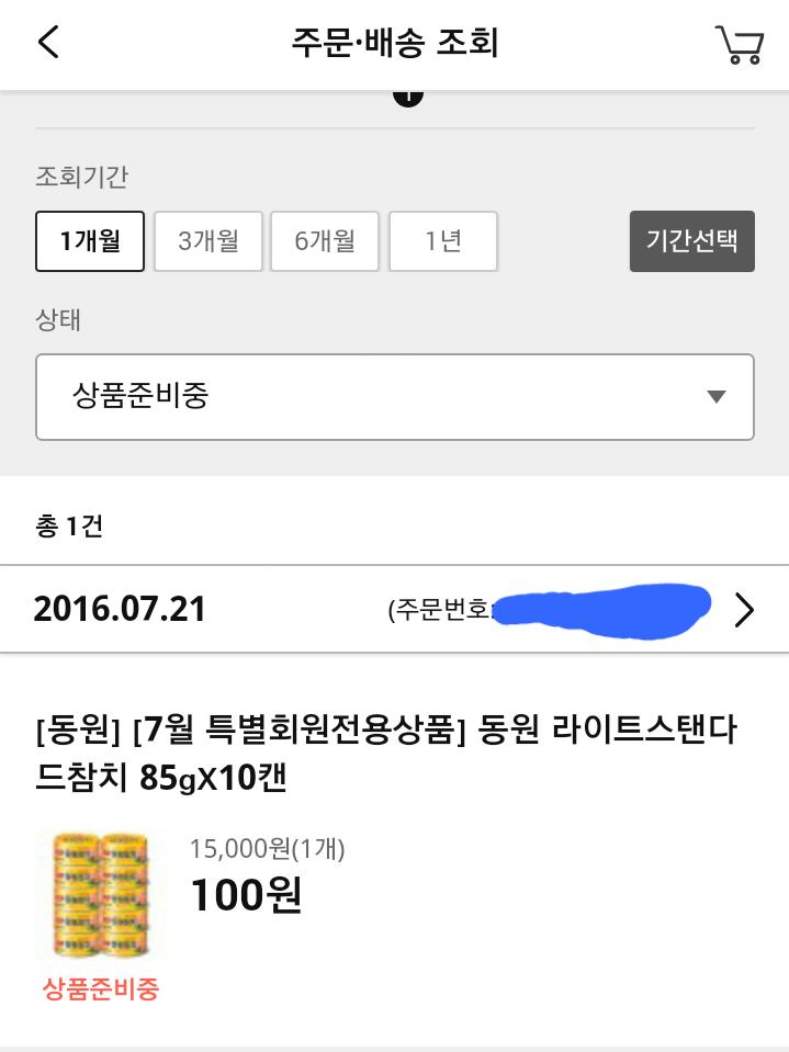 구매할수 있는 상품은 라면, 치약, 참치 세종류여서 냉큼 참치 주문했습니다~~