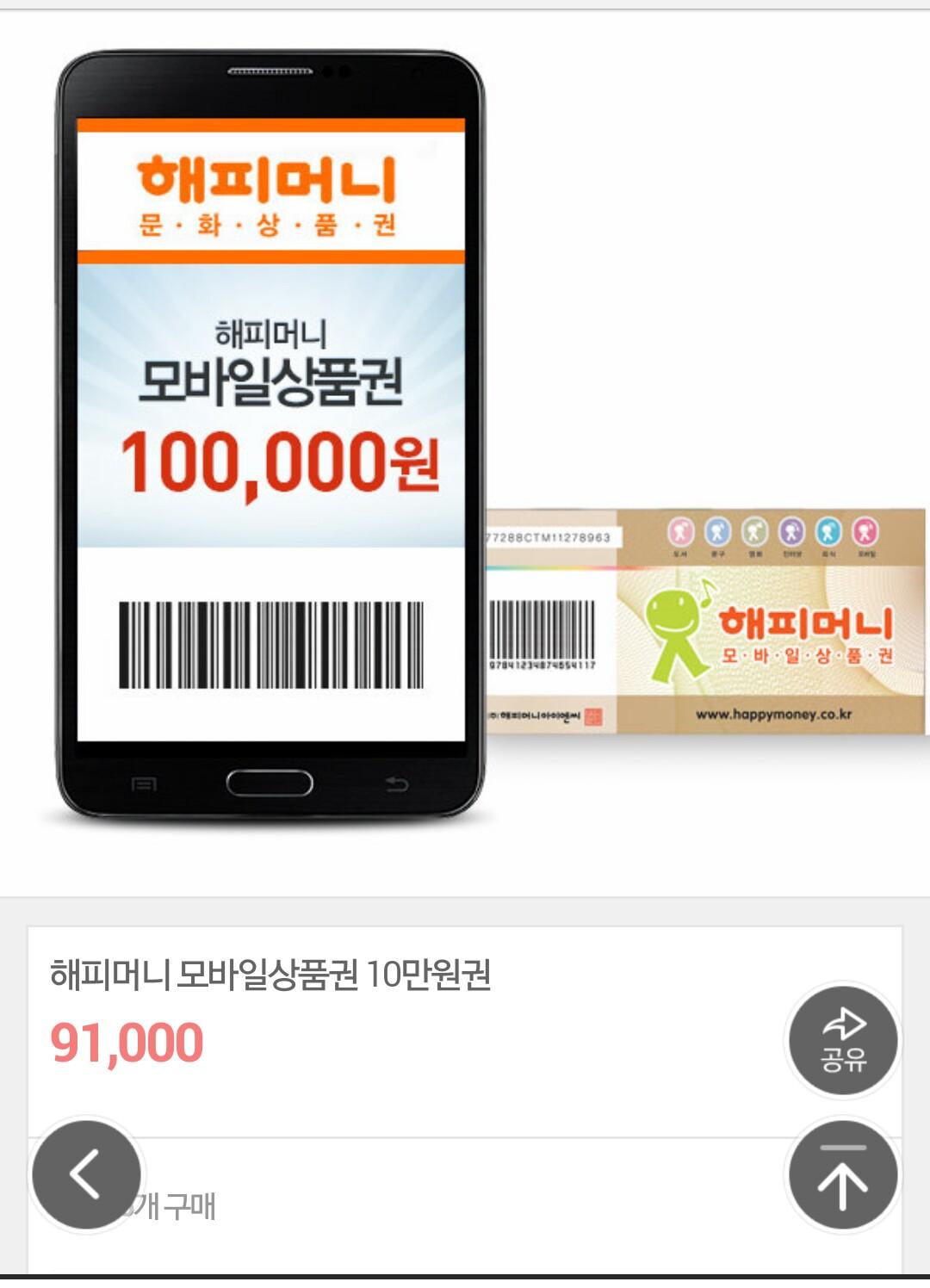 [G9] 해피머니 9% 할인 (91,000&45,500/무료) > 자유게시판