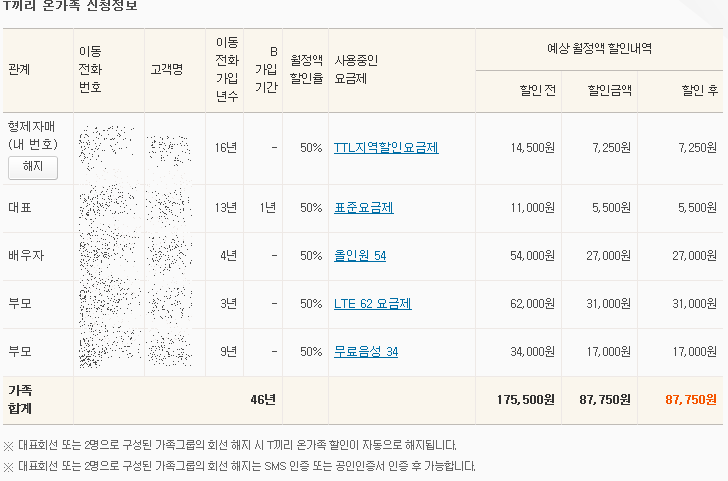 (원래 제가 대표회선이었는데... 여동생이 자기 신랑으로 집어넣으면서... 대표회선으로 변경~~)