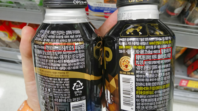 제가 표시해놓은 곳을 보시면 커피 추출액 퍼센테이지가 적혀있어요.