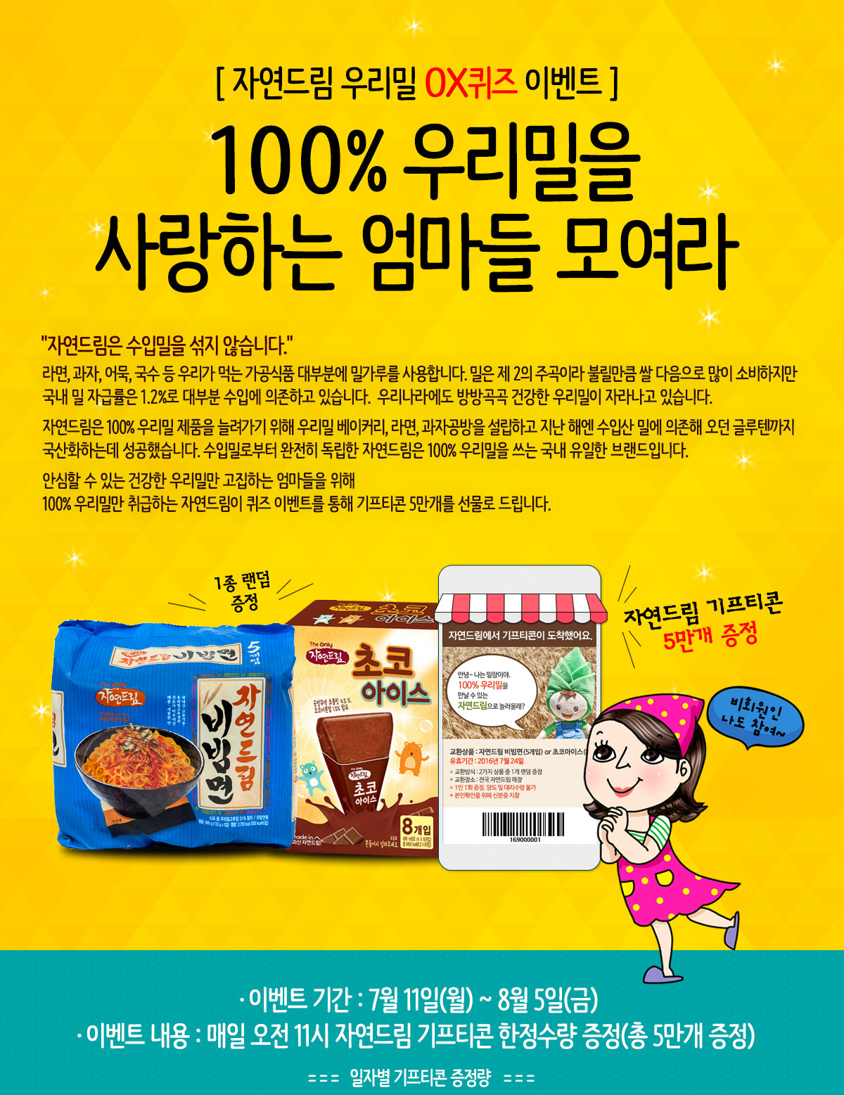 (여성만)자연드림ox퀴즈 (비빔면or초코아이스 )기프티콘 증정 > 자유게시판