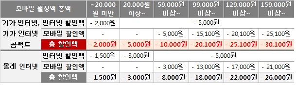 기존에는 휴대폰 요금제에 따라서 인터넷이 무료가 되기도 하고 회선수 별로 할인이였죠