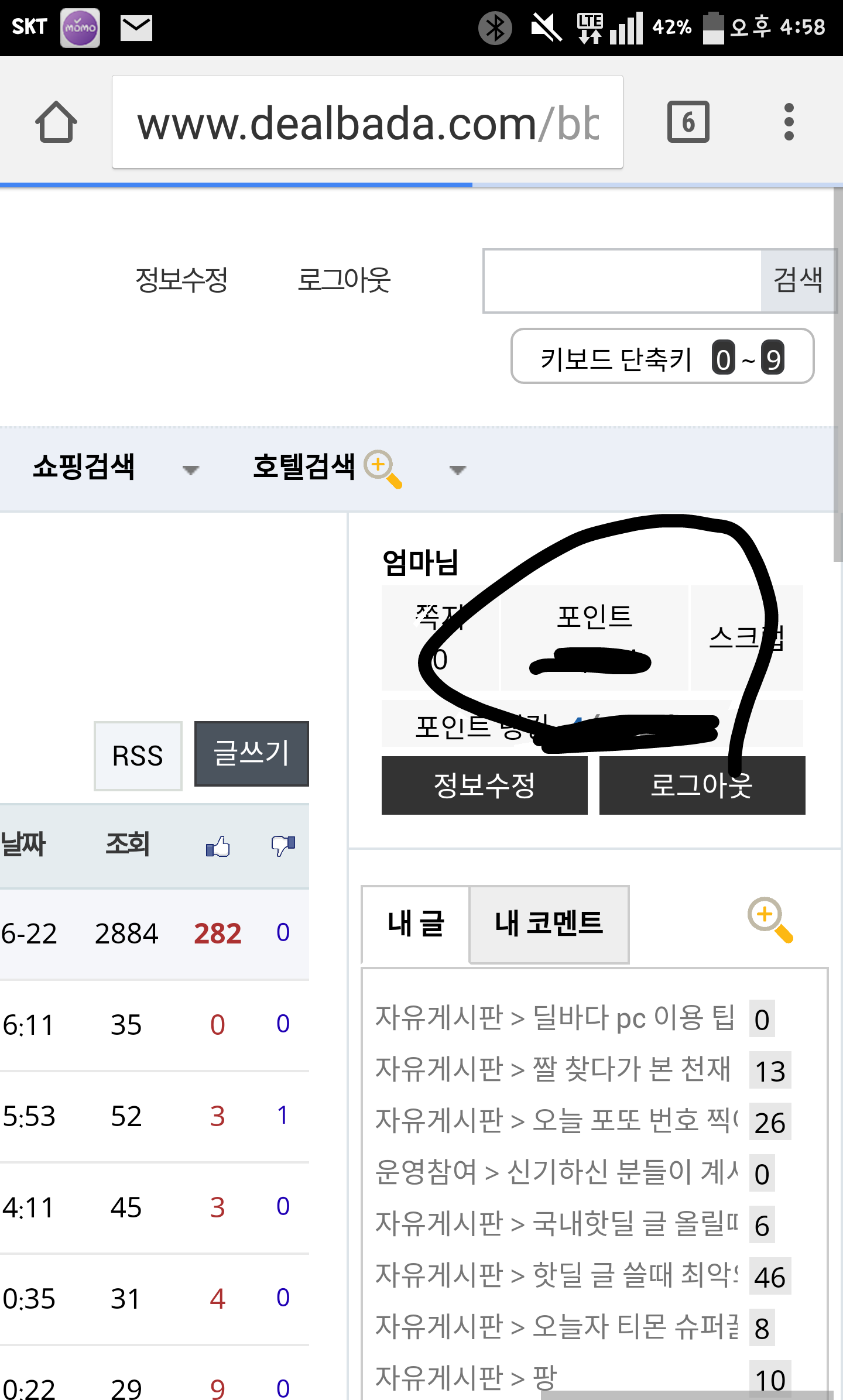 혹시 포인트 사라지거나 하신분들 눌러서 확인하면됩니다!!