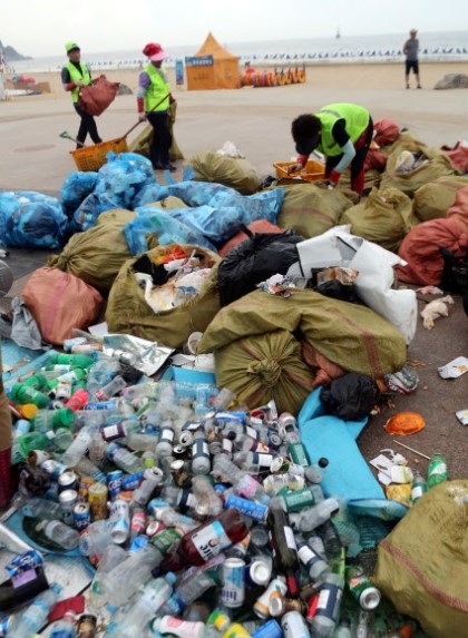 8. 쓰레기장 된 해운대 → 하루 쓰레기 13톤.(서울)▼사진