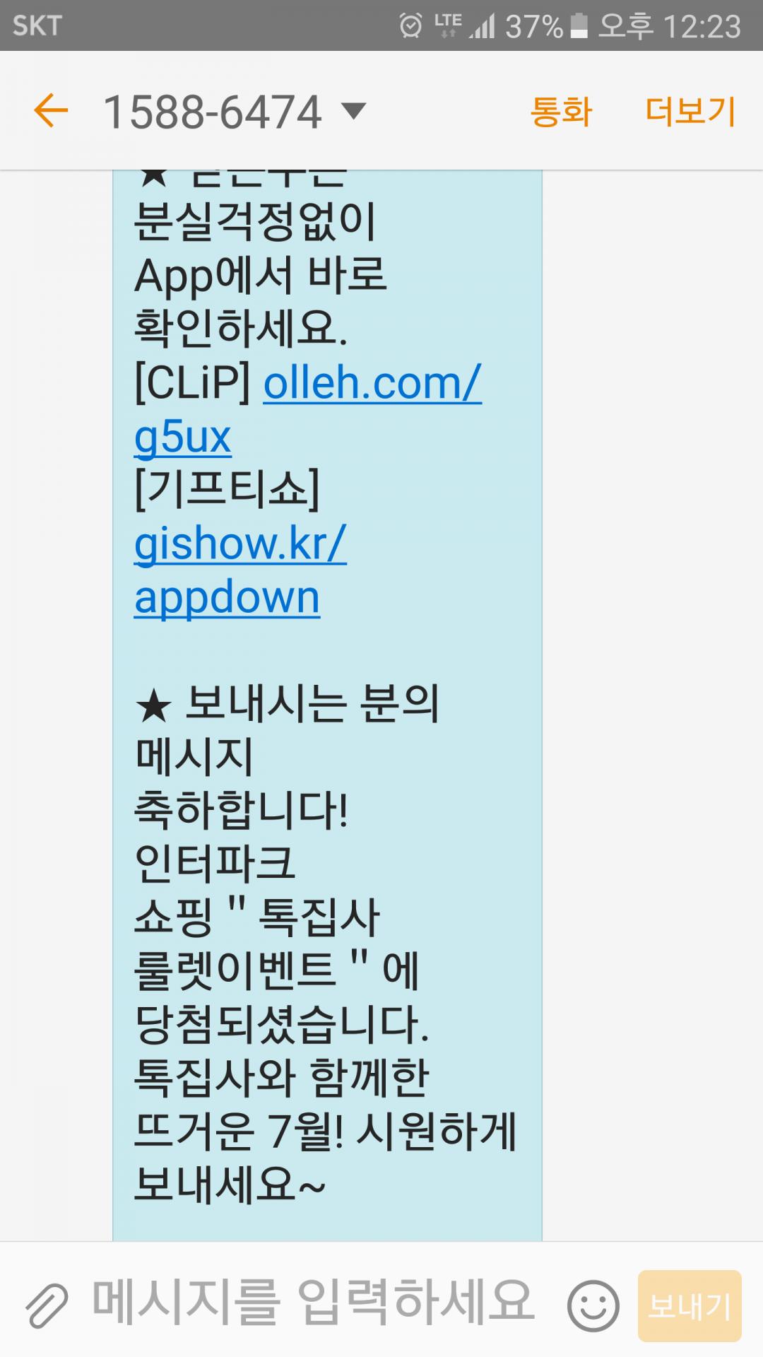 탈퇴한 인터파크에서 이벤트당첨 문자 오네요
