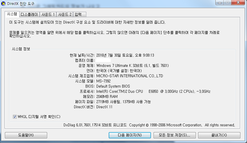 저의 전 사양이랑 비슷하군요 ... 6850...8600...메모리 2기가 |