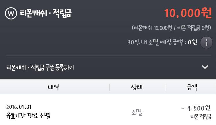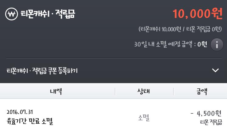 어제 티몬 적립금 4500원 소멸되는거 알고 있었는데
