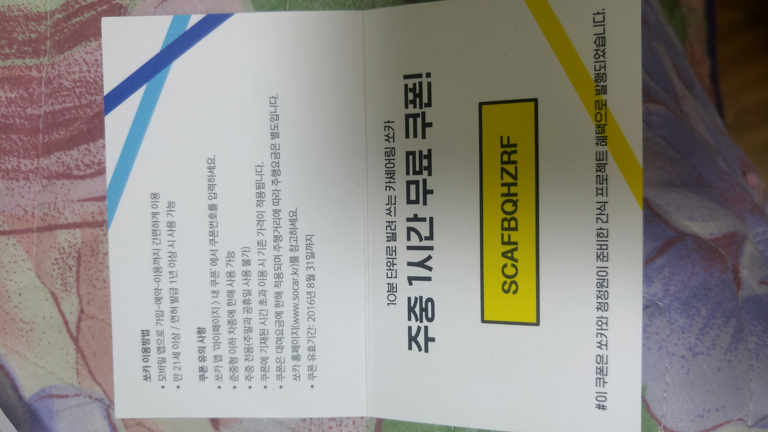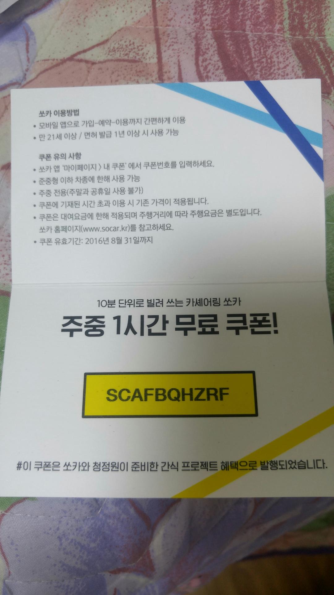 쏘카 주중 1시간 무료쿠폰 쓰세요~