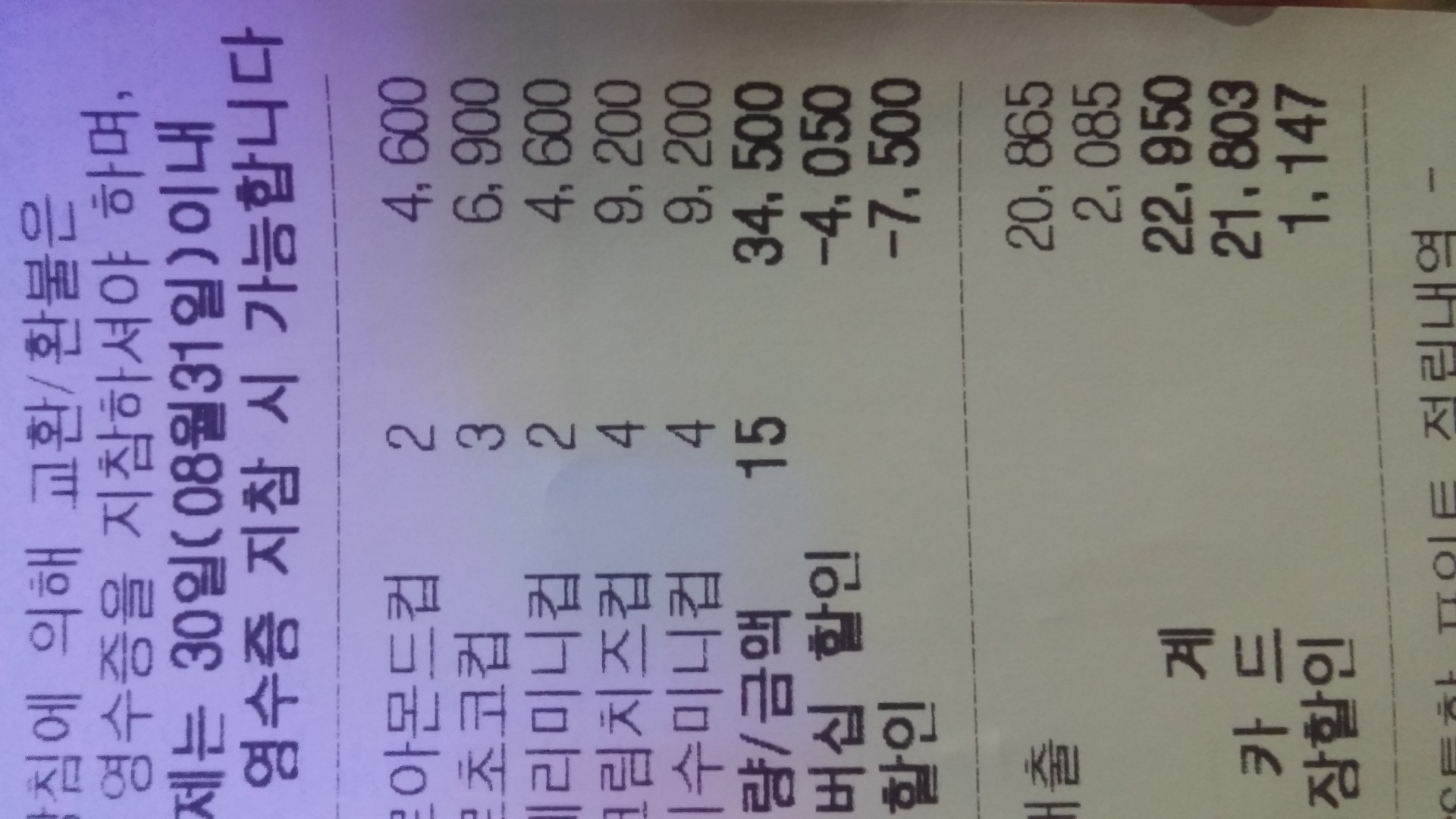 15개 사고 21800원에 영매권6장까지 생기니 정말 꿀이벤트가 아닐까싶네요~^^
