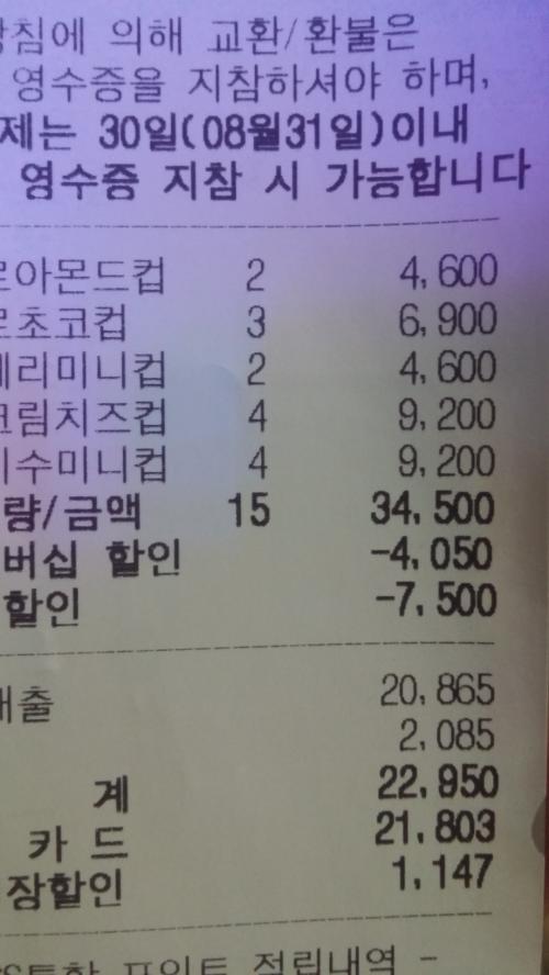 참고로 제가 간 지점은 아스크림컵이 2300원이었고 할인은 똑같이 500원 들어갔습니다^^
