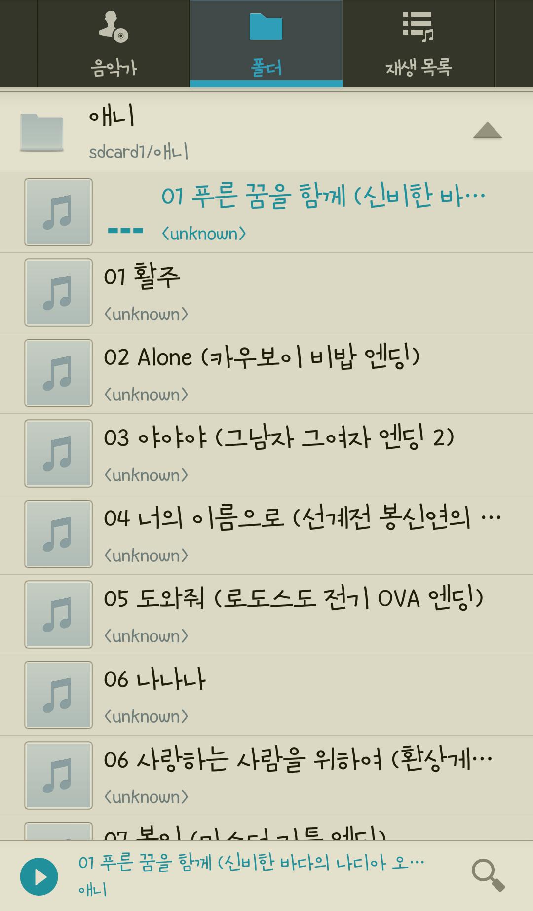 투니버스 ost를 다운받아놓고