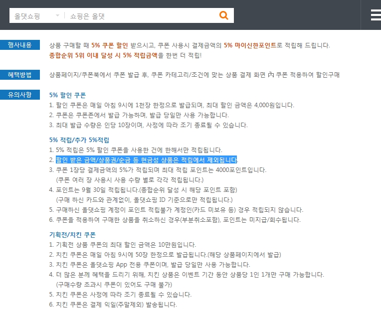 신한 올댓쇼핑 5% 할인 쿠폰 있네요(이벤트 내용포함)