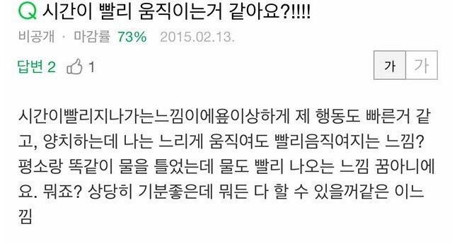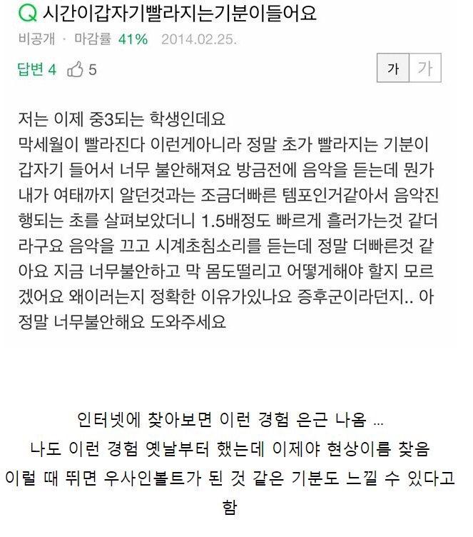 시간이 엄청 더디게 가는것처럼 느껴지거나..