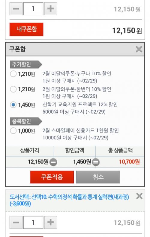 G마켓 도서 10%+추가12% 할인 ~ 저만 뜨나요? > 자유게시판