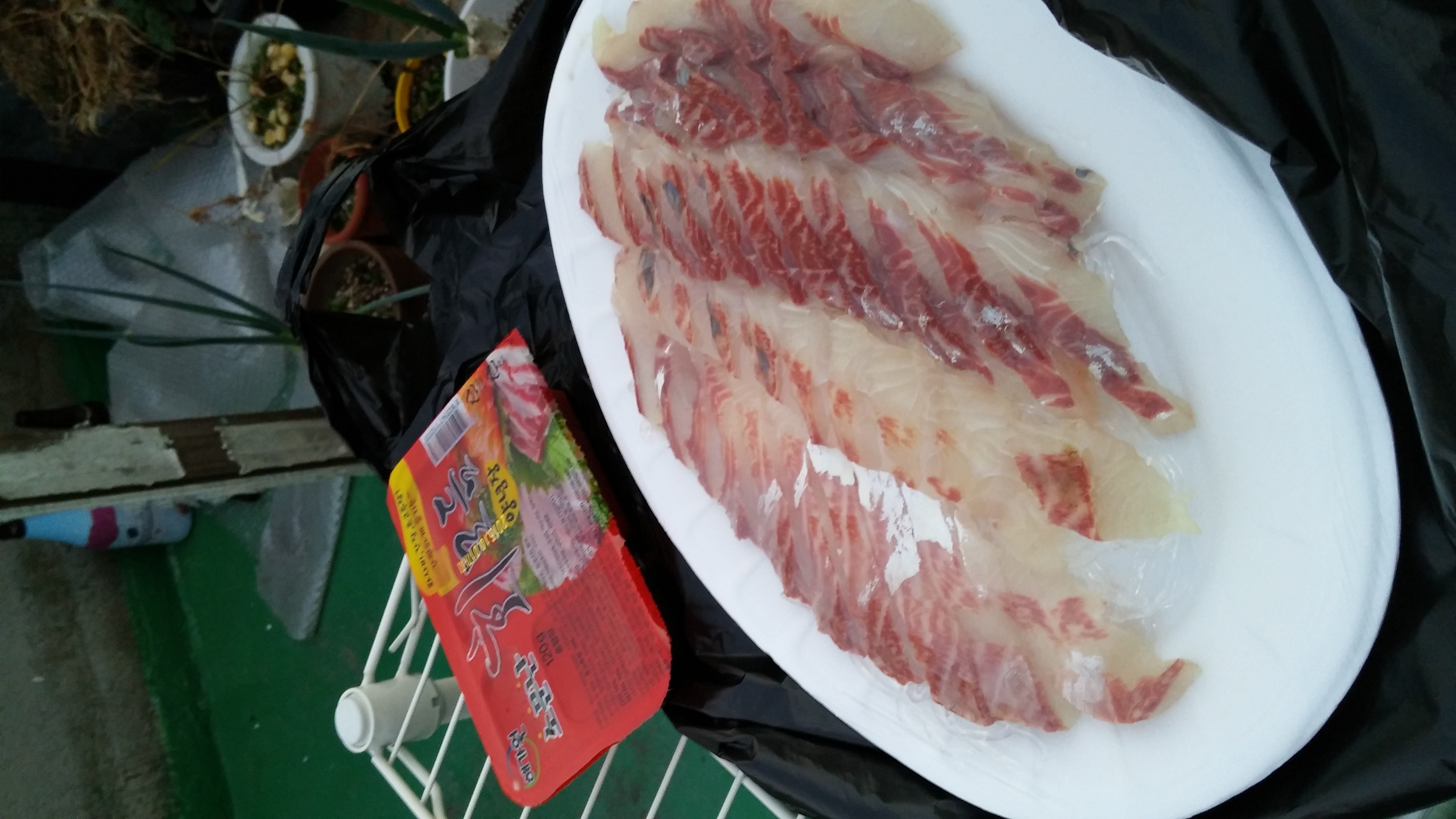 저번에 꽃게 사온곳에서 숭어회를 만원에 팔길레 매일 스팸만 구워먹다가 큰맘먹고 또 사와봅니다 ㅎㅎ