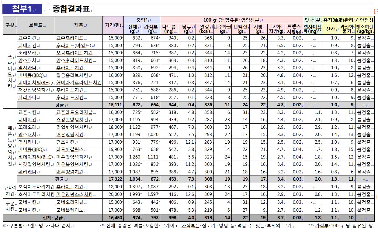 호식이 두마리치킨 프라이드랑 양념이랑 중량 차이가 거의 굽네치킨 한마리만큼 나네요.