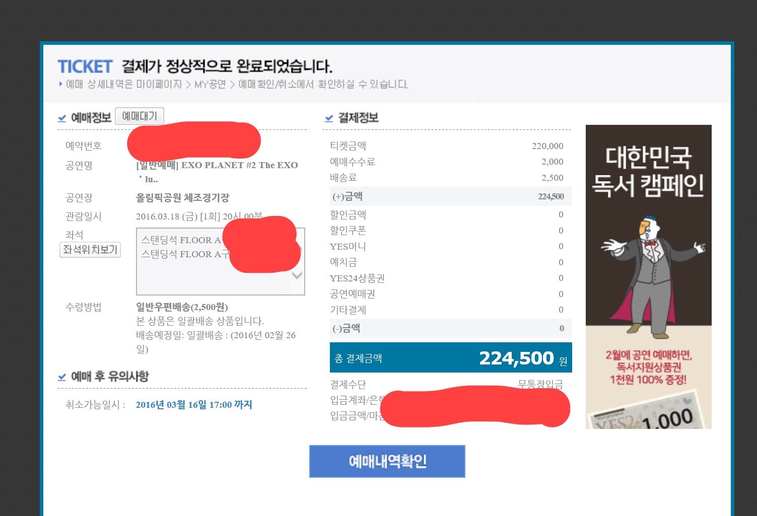 엑소 콘서트 예매하고 왔어요 > 자유게시판
