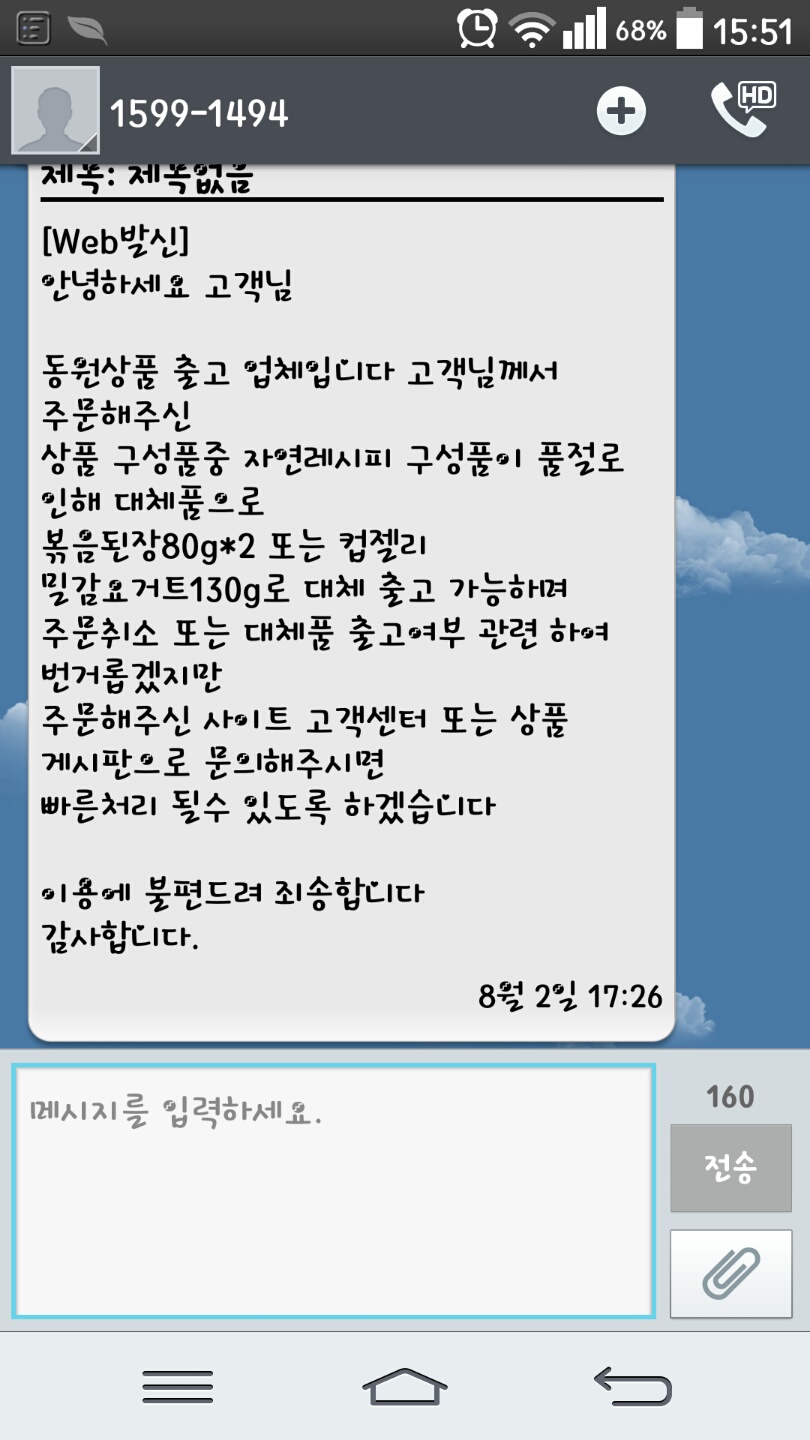 배송준비중으로 몇일 있다가 어제 취소문자가 왔더군요...
