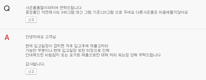 자연레시피 340g짜리 없다고, 볶은된장이나 요거트??로 바꿔서 보내준다고;;;