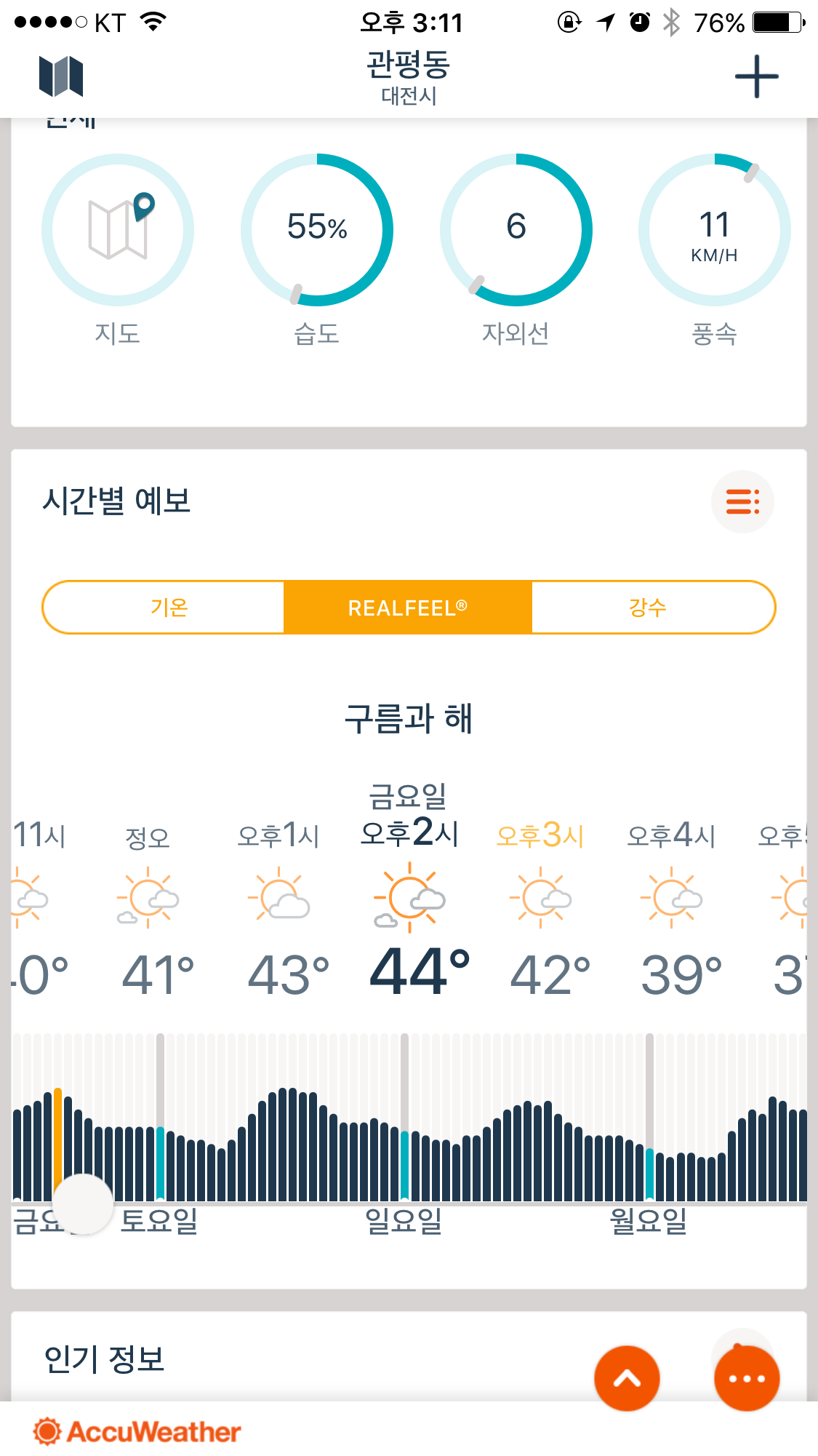 아큐웨더 실제온도가 맞는거라면....