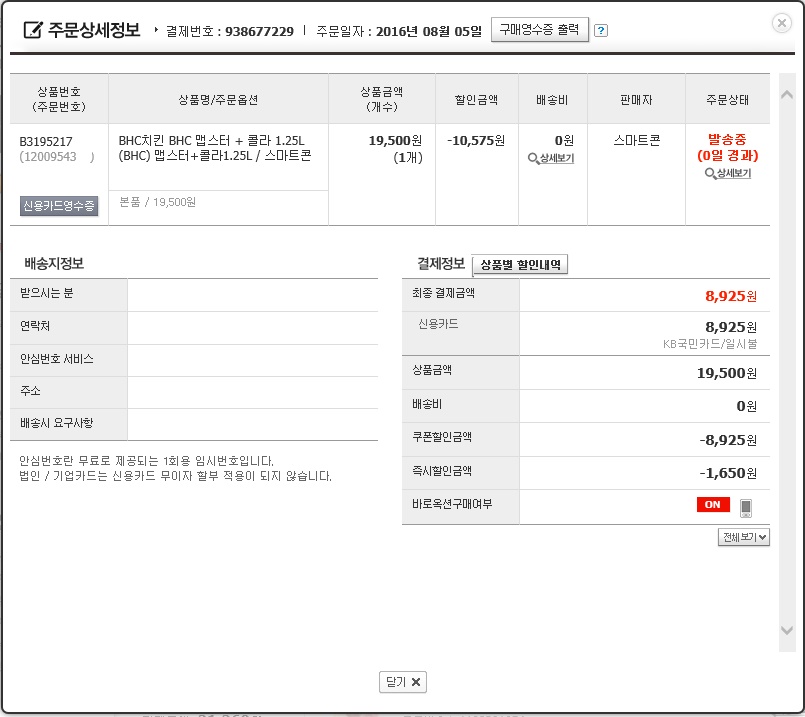 저희동네 bhc는 옥션으로 주문하면 계속 영업안한다고 자동취소되는 .. ㅠㅠ | ||